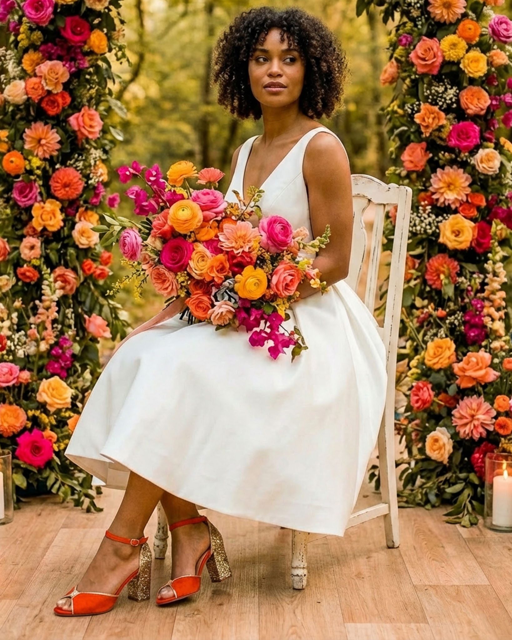 Idéales pour un mariage en extérieur, champêtre ou bohème, ces sandales s’harmonisent parfaitement avec un bouquet aux teintes corail, fuchsia et abricot. Elles insufflent une énergie solaire à une robe épurée et deviennent un véritable parti pris stylistique, transformant chaque pas vers l’autel en déclaration de style.