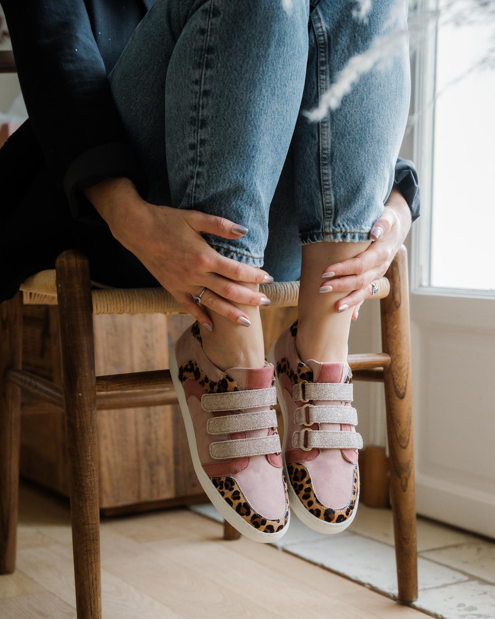 Baskets roses, léopard et or blond - €240.00