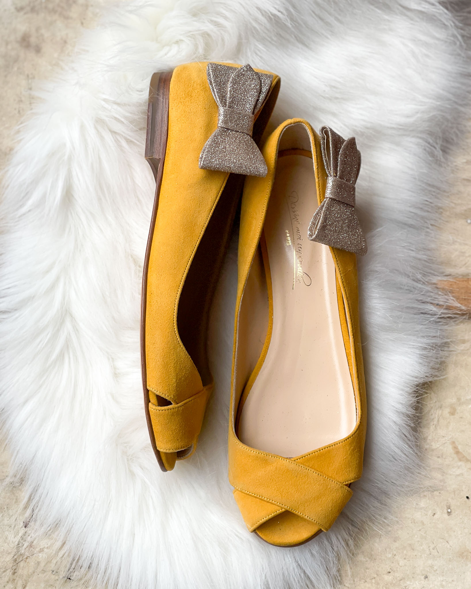 Ballerine en velours moutarde.