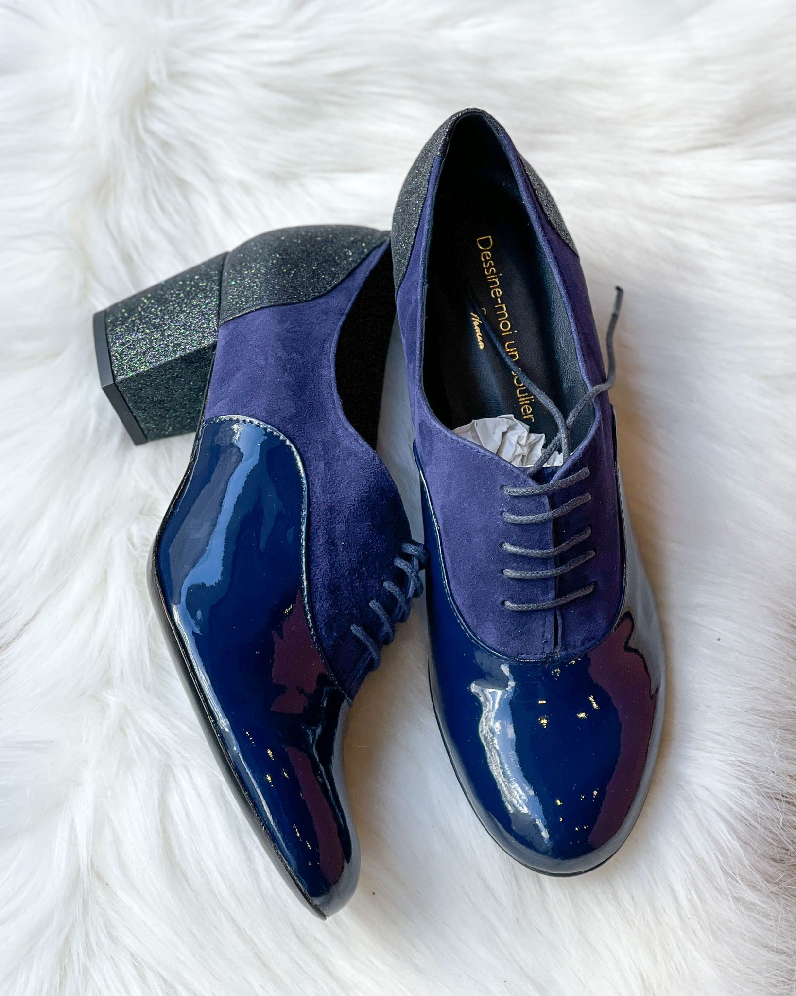 Richelieu en vernis et velours marine, paillettes starlight – 41 - €180.00